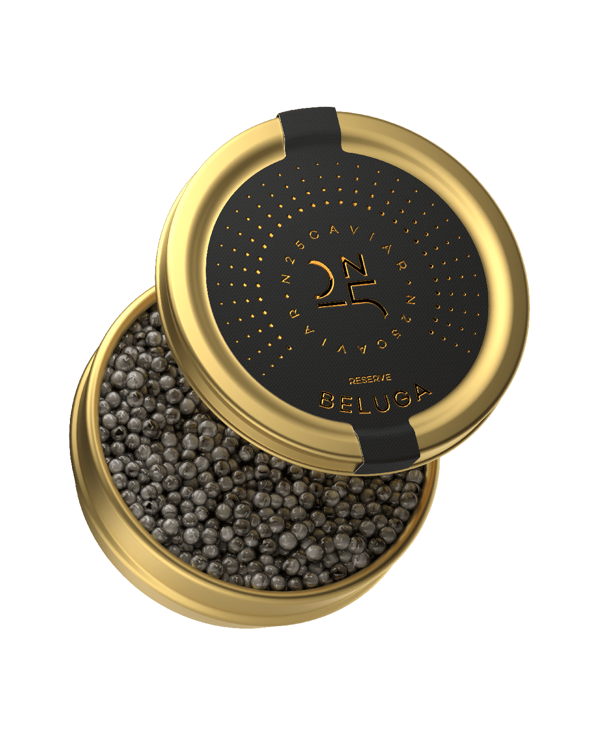 The zenith of caviar excellence resides within the coveted Beluga, sourced from the revered Huso Huso sturgeon. Renowned for its celestial texture, the precious orbs exude a symphony of delicate yet opulent flavors, suffused with buttery richness that leaves an indelible mark on the palate. The caviar's resplendent eggs gleam with a luminous spectrum, ranging from a gossamer silver hue to a profound and mysterious grey, each pearl attaining a size of up to four millimeters in diameter.